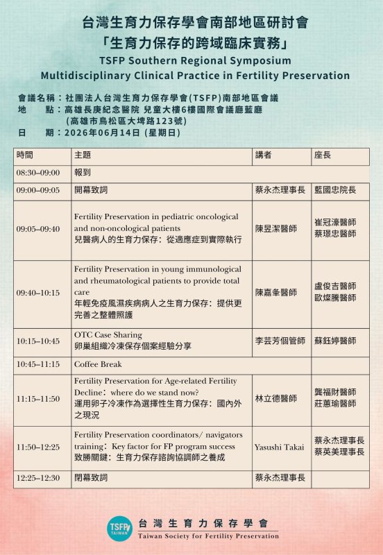 台灣生育力保存學會-2026年06月14日 南部地區會議